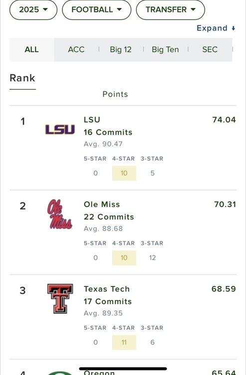 1. Tech is likely to win the big 12 this year and will be in the CFP, they pulled one of if not the highest ranked transfer portal classes. They will be this years ASU/Indiana