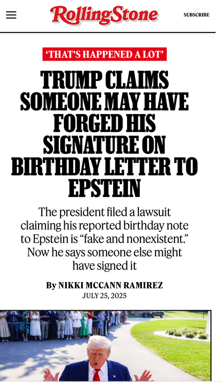 1. https://www.rollingstone.com/politics/politics-news/trump-epstein-letter-claim-forged-signature-1235394203/