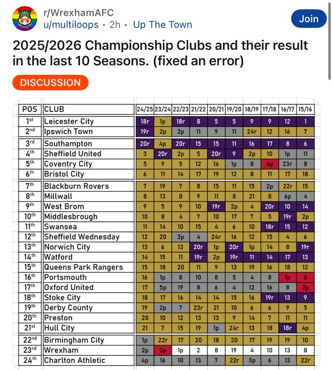 2. EPL - purple Champ - gold EFL 1 - gray EFL 2 - red National League - white