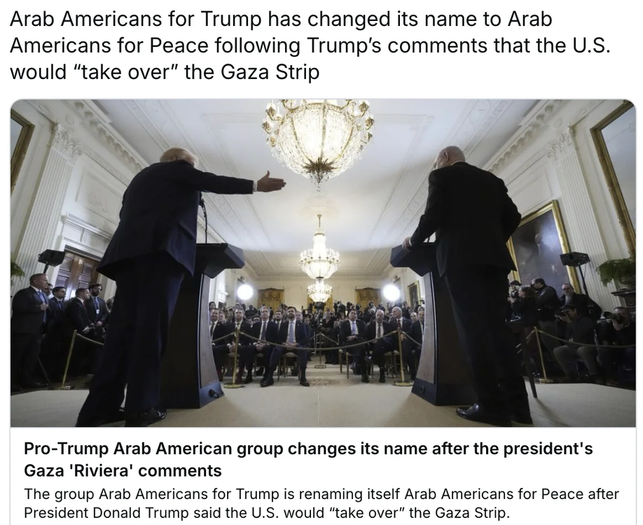 5. Interesting take from the r/Detroit subreddit regarding the Deaborn Caucus and the like: I think the part about just being "against Israel" is pretty spot-on. They don't care about Palestine or the Palestinians - they just oppose Israel. Trump's Gaza plan/statement is about as much of a worst-case scenario as they could imagine.