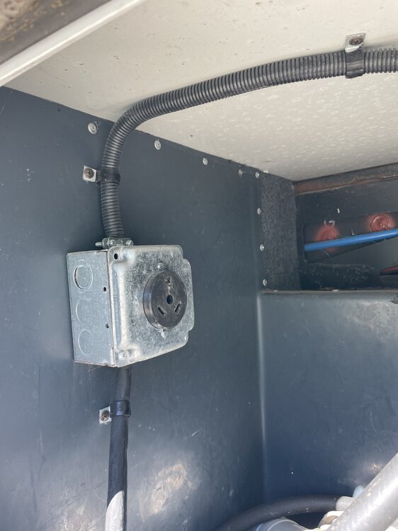 1. I’m trying to figure out what this plug is for. The cord coming off of the bottom is what connects to land power. We do have an onboard generator so not sure if it has something to do with that.