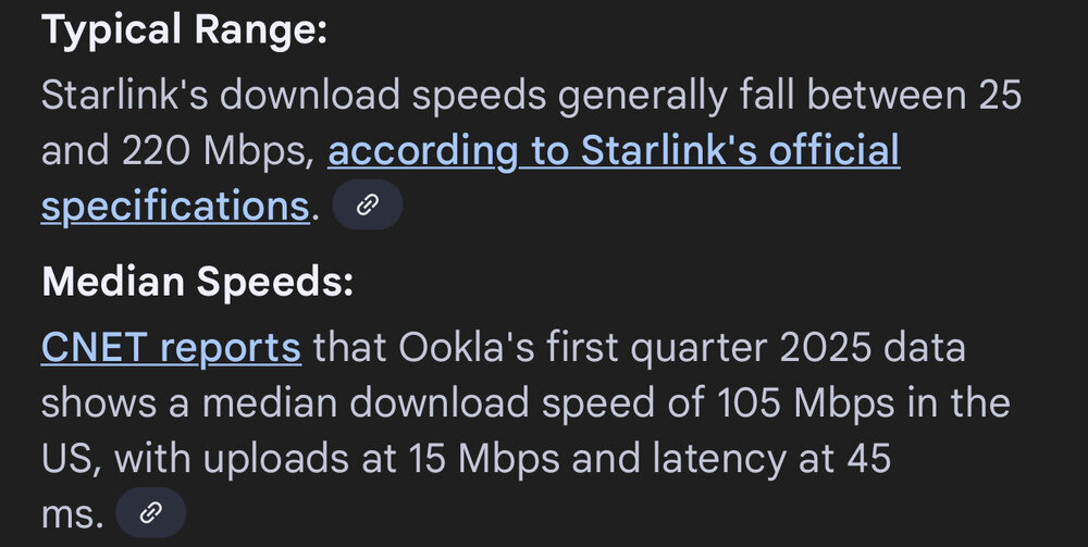 20. What’s your starlink download speed?