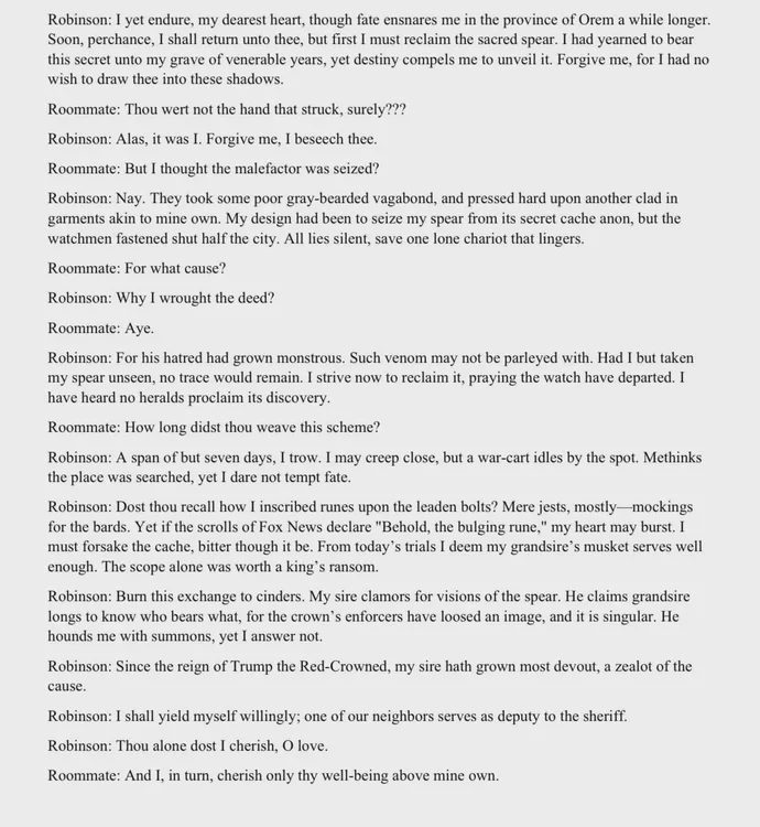 Charlie Kirk assassinated at an event in Utah (by a 22 YO groyper)SpiralOut replied to msbesq's topic in Cloak Room Me too, man. I'm willing to concede that in stressful situations, with incompetent people, and the random chaotic nature of the Universe things aren't always going to line up perfectly. Which is kinda why the texts seem so fake to me. It's just too convenient. Robinson just spews information like he's a student giving a speech for class. He's just dumping information. This doesn't read like a real conversation. It's like a bad author/screenwriter that is going heavy on the exposition to make the plot make sense.