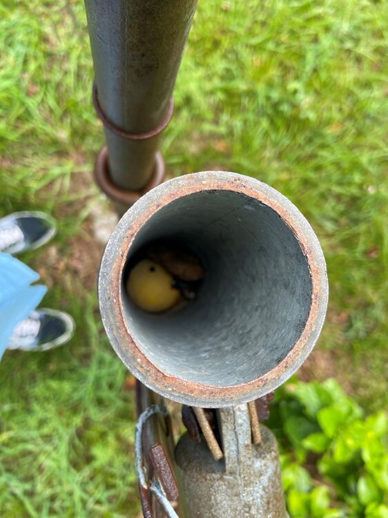 17. Not sure where this post should be. But it references "food". Please move if needed. Sometime in the late 1970s or early 80s my siblings and cousins were hunting Easter Eggs at my grandmother's house. She had a chain link fence around her yard. Someone had the bright idea to remove one of the caps on the anchor posts for the gate and hide an egg in the pipe. The problem was that, for one, who would look inside a fence posts for an egg, and two, the egg dropped too far down to be retrieved. My grandmother passed away in 1986 during my sophomore year at UT. That is the date that I am using to try to determine the timeframe. After my grandmother's passing the house was sold. I have always wondered what became of that egg. A couple of weeks ago my fiancee and I were driving through the town where my grandmother used to live and I was telling her about the egg. I told her that I wanted to drive by her old house to see if the egg was still there. Remember, I have not been to her house since the Spring of 86. We pull up to the house and I walk up to the gate and remove the cap. The egg was still in there! I was shocked. Seeing that egg in there brought back tons of memories of playing in her yard and remembering all of the aunts, uncles, cousins and other relatives that have since passed. Last week my mother turned 80 and we had a celebration for her. Naturally there were relatives there that were present at the Easter Egg hunt when the egg was placed in the post. I showed them the picture of the egg and they were amazed as well. There are just a handful of us left that remember the egg. I just hope that the present homeowners never have a reason to disturb it.