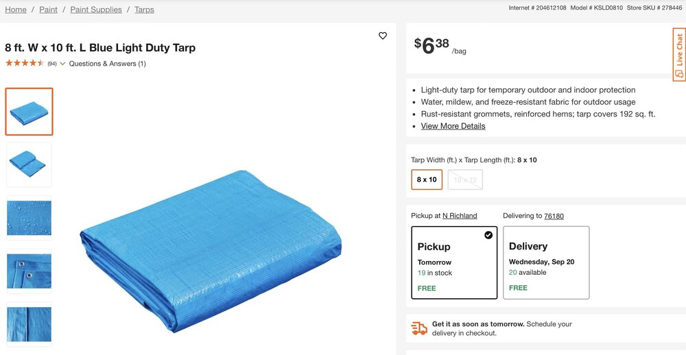 5. It looks like a damn blue tarp. Pretty cheap at Walmart and HD. It’s going to be an 11am kick.