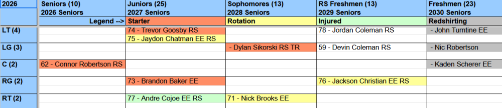 13. how about no depth at all? if the .xls is correct, after robertson, the next center on the roster isn't even on campus yet and is an EE that's going to shirt that's right center, snapper, deep snapper, current depth is: 2026 senior: 0 2027 senior: 0 2028 senior: 0 2029 senior: 0