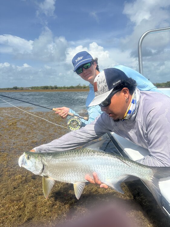 20. Rojo Jr upgraded his PB Tarpon in Belize last week. Family trip, so only broke away for a day. I fed a big one, but it spit the hook fast, then had another 70ish pounder swipe at my fly and miss (I probably took it away from it)