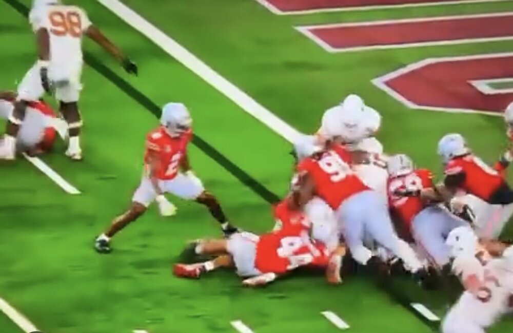 18. That’s the best linebacker in the country he made do a somersault. That has to be better than this.