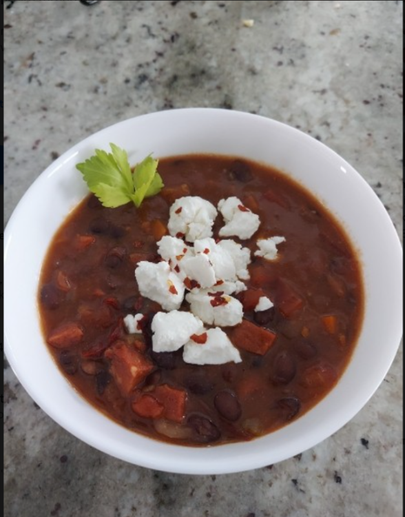 2. By all accounts we're going to be snowed in through the weekend, so I whipped up some black bean and Linguica (Portuguese sausage) soup- topped off here with a little bit of goat cheese.