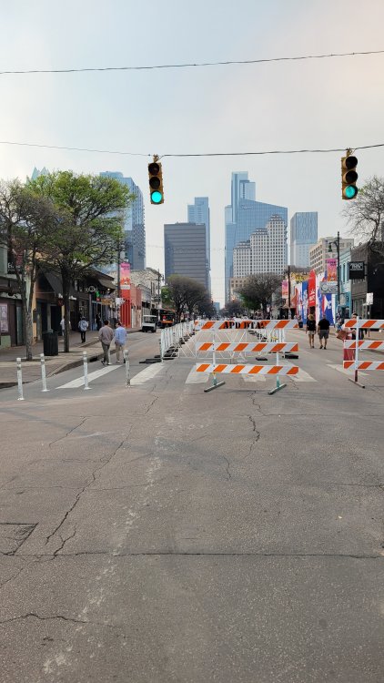 attic ted, rattlesnake milk, perennial, rickshaw billie's burger patrol, the thing yesterday. perennial was obnoxious but everything else was good. downtown was deserted as fuck, moreso than on a regular weekend. here is sixth street at 5pm yesterday.