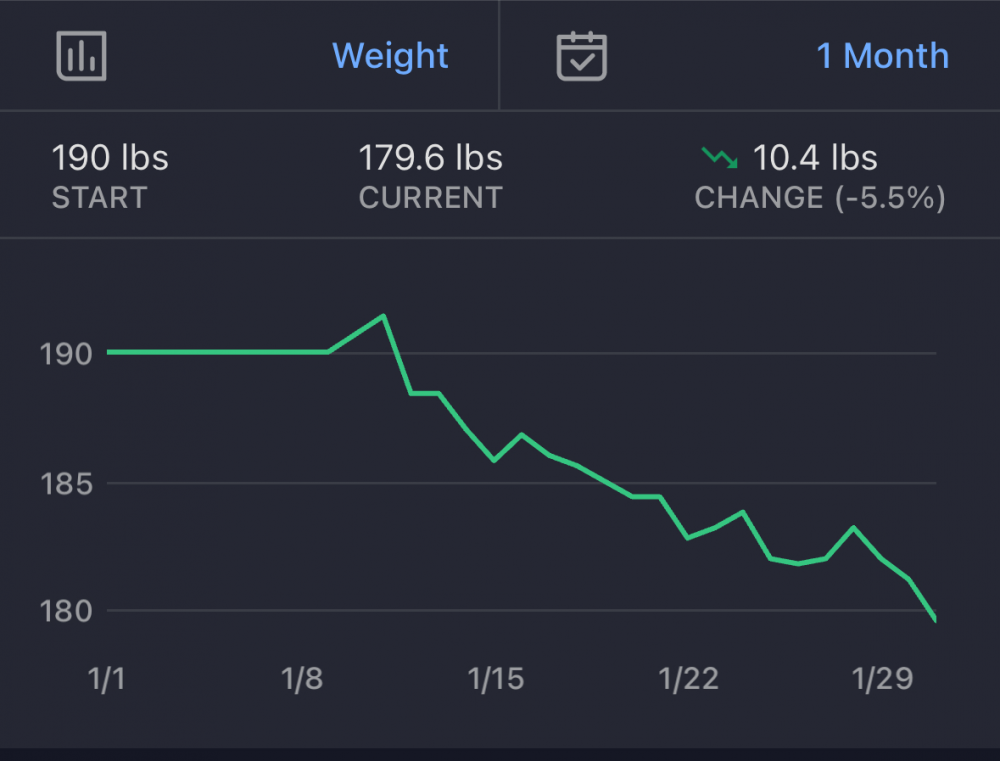 8. I agree in principle about weight not being the number or perhaps the most portent number, but I will say that for me tracking metrics is important in my ability to stay on target during a slow process like this. i look forward to the “ what’s it going to be” every morning on the scale. And this is the first time I’ve done calorie counting - that makes a big difference. I want to just eat that cornbread muffin sitting there but more than that I don’t want to fuck up my number. Also I finally ordered a bowl for the first time at chipotle - I know bread is a calorie bomb but I finally gave in when I was playing with the nutrition counter on their website trying to figure out how I could get cheese and sour cream.