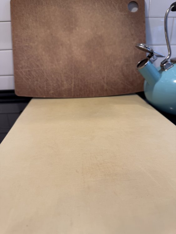 Epicurean makes (or I guess probably brands and sells) those same richlite boards https://www.amazon.com/Epicurean-Kitchen-Cutting-Board-Natural/dp/B0008221BG/ref=asc_df_B0008221BG?mcid=323699b5123838b0b975233072881386&tag=hyprod-20&linkCode=df0&hvadid=693711674149&hvpos=&hvnetw=g&hvrand=1314856935682145422&hvpone=&hvptwo=&hvqmt=&hvdev=c&hvdvcmdl=&hvlocint=&hvlocphy=9009718&hvtargid=pla-307285155066&th=1 My favorite are these rubber cutting boards https://www.amazon.com/dp/B000KL7QA6/ref=sspa_dk_detail_0?pd_rd_i=B000KL7QA6&pd_rd_w=fya6K&content-id=amzn1.sym.8c2f9165-8e93-42a1-8313-73d3809141a2&pf_rd_p=8c2f9165-8e93-42a1-8313-73d3809141a2&pf_rd_r=Y83XY8F7J6SD36M9VH94&pd_rd_wg=wLwq9&pd_rd_r=819d35a3-ecaa-4bb6-92e0-134b51facaa2&s=industrial&sp_csd=d2lkZ2V0TmFtZT1zcF9kZXRhaWw&th=1 soft/easy on knives and dry quickly. We have a couple of those epicurean guys that my wife likes to use (because she can throw them in the dishwasher) but I always pull out the rubber board.