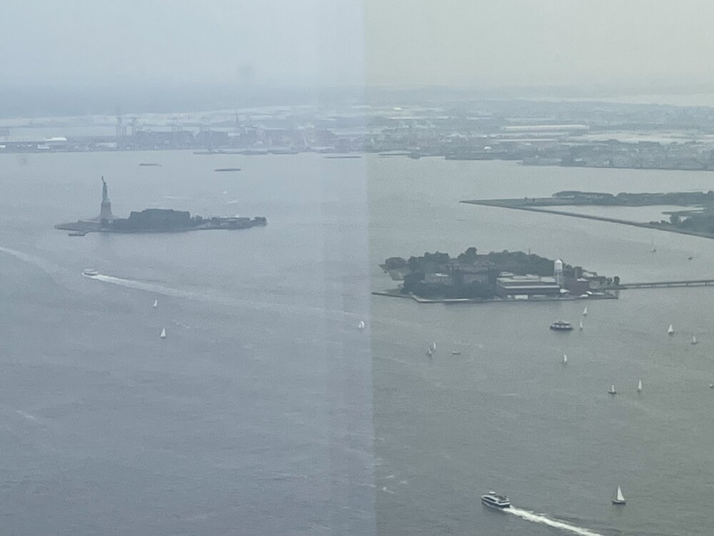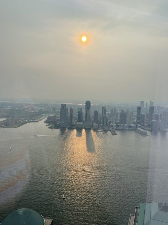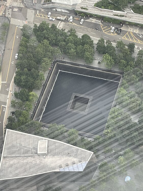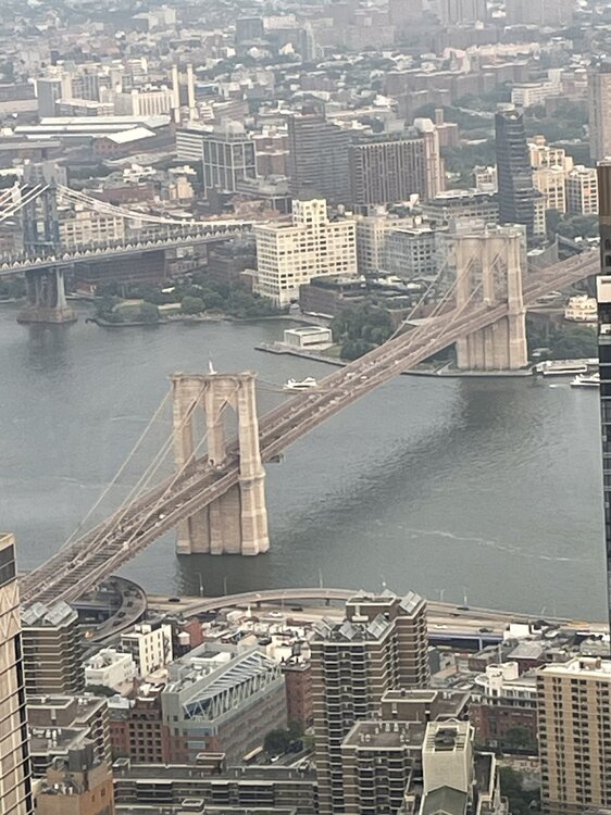 9. I have some more from the NYC trip from a little over a week ago. 1. Jersey City from the 81st floor of World Trade Center building; as are the next three. 2. Brooklyn Bridge 3. The footprint of one of the former towers 4. Statue of Liberty and Ellis Island 5. Central Park from the 24th floor terrace at the New York Athletic Club 6. My view of town as I head back to New Jersey on the ferry to Weehawken. That crazy looking building is actually a movie theater, among other things. It's at about 58th Street, or 57th.