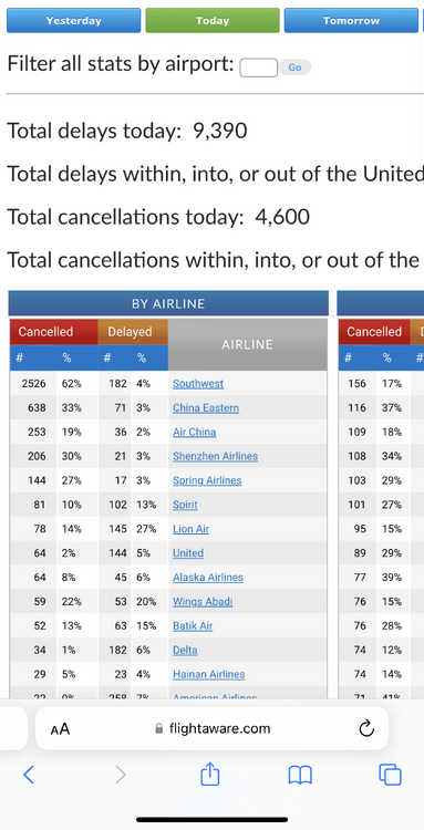 9. Worse today. and west coast flights haven’t even started. tomorrow looks f’ed as well.