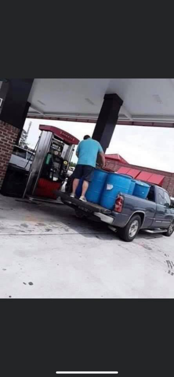 9. These folks have the brain capacity to fill a barrel, plastic container, or trash bag with gas. Do they now have enough capacity to siphon the gas into their gas tank?