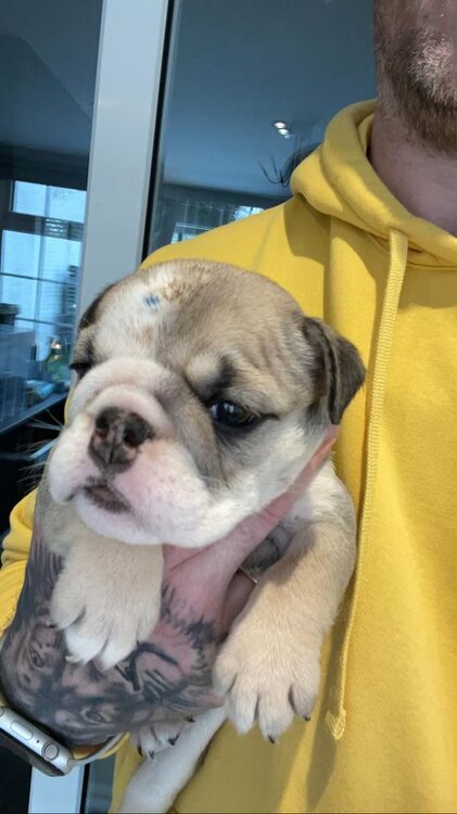 9. Here is the latest picture of "blue dot." She arrives two weeks from today. We are still thinking of a name, which is made more difficult since we haven't met her in person due to the Covid lockdowns in London. Anyone have some tips on how they have socialized a pup during the pandemic? London will be a bit different to the US due to stricter lockdowns and limitations on mixing households, although we will certainly smuggle some friends and their kids over to the house and do some walks in the parks to get her acquainted with other dogs. Normally we would also have plenty of pub time with the new bully, but they are closed until Spring.