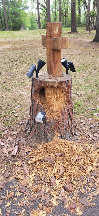 10. We had a mystery at the NNM household. Last week, when we were out of town, the guys working on our house sent me a pic of a stump off our driveway that was all torn up. The pine tree died a few years ago and I chainsawed a cross in the stump instead of grinding the stump down then. The gnawed-up portion is new. My 89-yo neighbor looked at the pic, and ruled out a beaver, nutria, and hog. He said it might be a pileated woodpecker. Largest woodpecker in North America. Roughly the size of a crow. He said in parts of East Texas, it’s known as a β€œLord God Almighty bird.” https://en.m.wikipedia.org/wiki/Pileated_woodpecker I’ve been staking out the stump the last couple of days. This morning Mr. Woodpecker finally made his appearance. I was able to creep around and get some good pics. IMG_0225.mov This gruntles me.