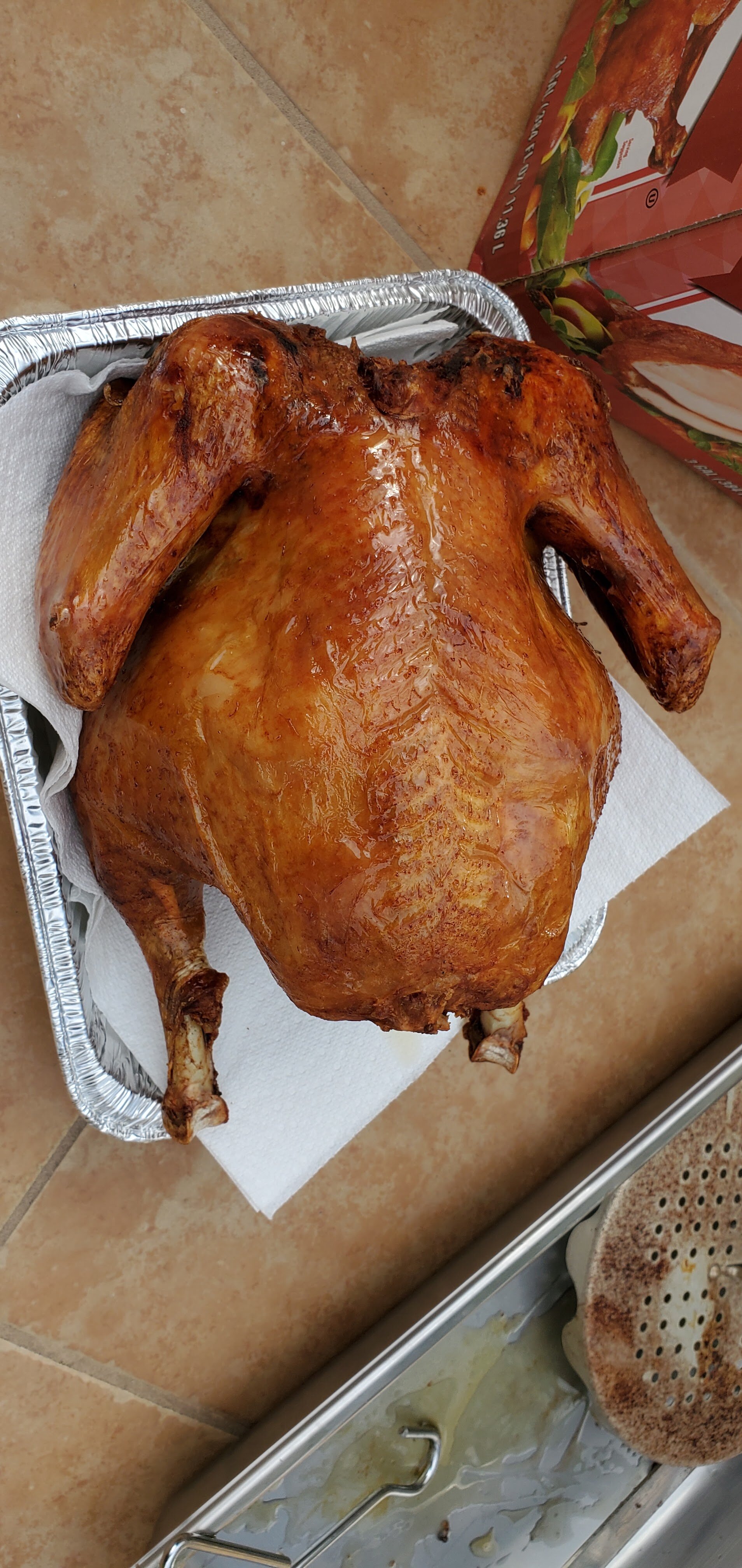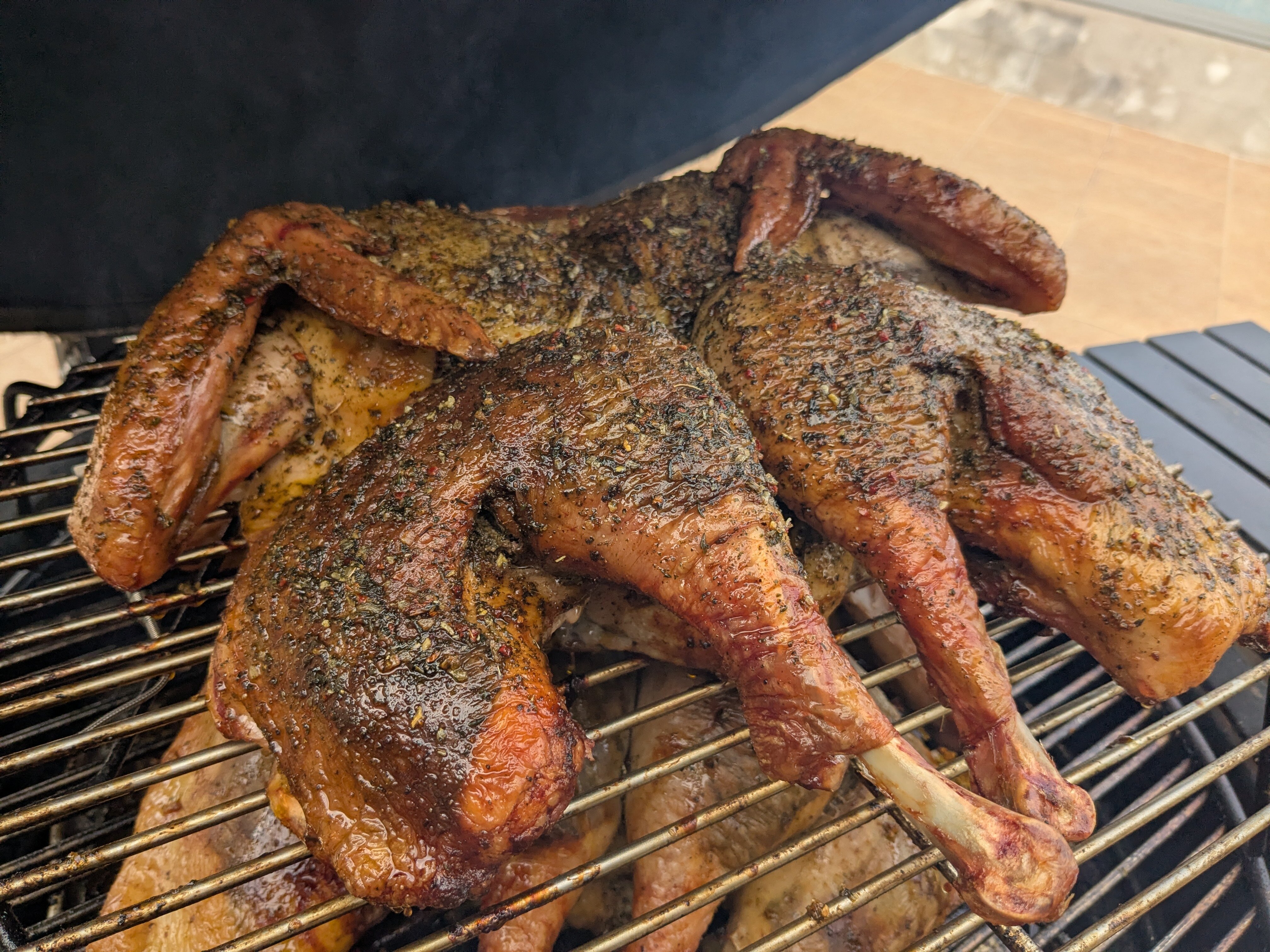 6. WSM, usually 225 or so, and just let it go until 125 internal. Should be 3-4hrs. I used to do it in 2 ovens but this is lazier and leaves ovens open to do other dishes. (Pic from a previous year, I've done this every year for a long time now) I got flowers.