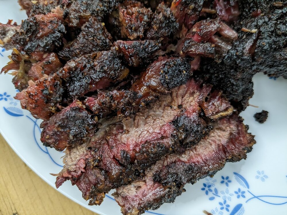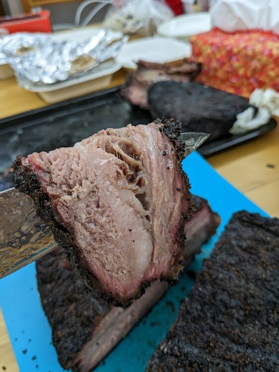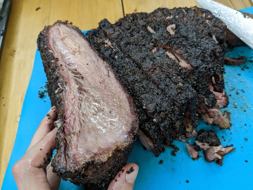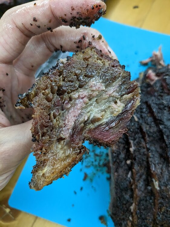 This was the first hot and fast I'd done on beef, and it's definitely less forgiving, edges and corners got dried out. But, meat was on at 10am and done at 4pm, hard to beat that. Rested and ate a rib at 6, sliced the brisket about 9pm.