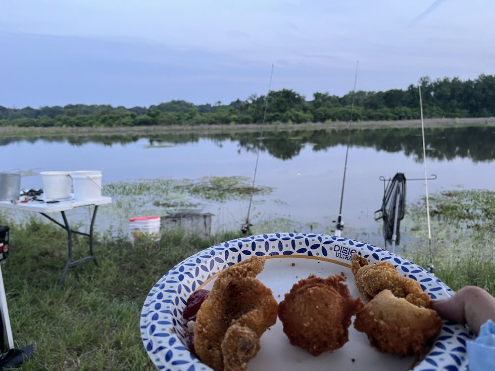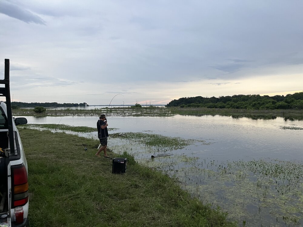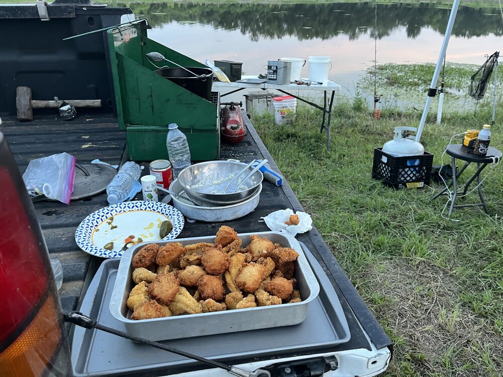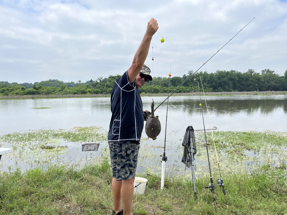 Sure. Although we had 4 or 5 dead fish in the live box when we quit a Friday night, we cleaned them real quick and threw the heads and hit back in right where we were fishing. My buddy Sat drinking beer and fishing all day Saturday while I hauled some hay with the tumblebug. He drank way more beers than fish he caught and I stopped by for a bit and he caught a couple of these guys. said he had mainly been catching turtles all day. Next time we’ll bring our Cajun friend and let him make a soft shell sauce picante.