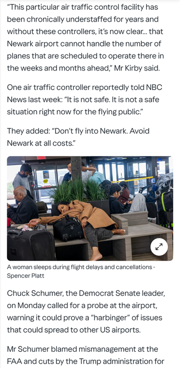 23. That sentence says it all about what we've become. In other news, flying in the US is starting to show the cracks of trump and Elon bullshit, and is it rapidly heading towards unsafe? https://www.yahoo.com/news/newark-airport-not-safe-fly-214408442.html