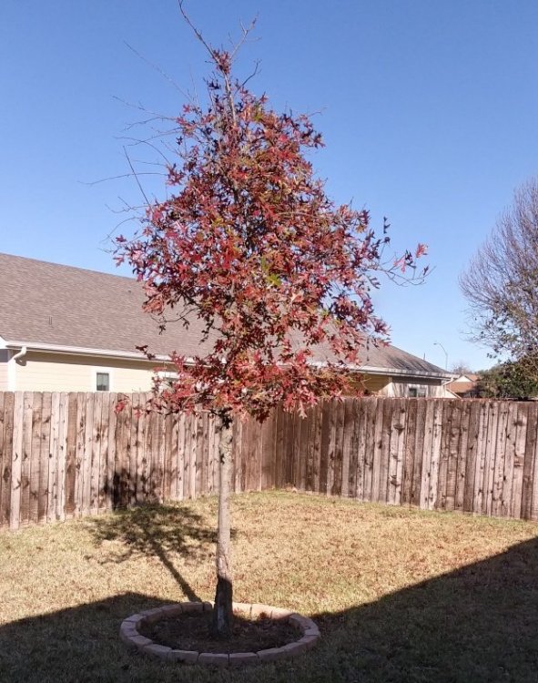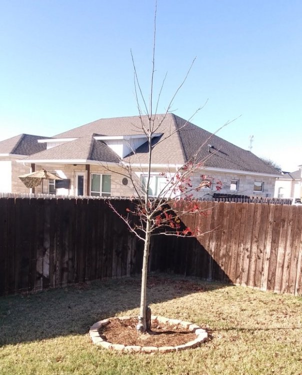 1. Tall one. Coulda probably cut it back a little more but I didn't want to drag a ladder out of the garage. Enlarged the ring around the base. Probably still need to treat the scar at the base . Now the short one: The stump on the right side was attached to the main tree. Couldn't do much, but at least cut the top back, angled it down and painted it. The two on the left side weren't too tough to cut off. Angled each one and painted over them. With the arrival of sisters German Shepherd pup, realized the futility of trying to put any kind of briquette fill - he'd try to eat them, or play chase with one and eventually choke to death. Used some kind of cedar mulch. Coulda cut more off, but feel pretty good about how it all ended up. Thanks a whole bunch for all the advice!