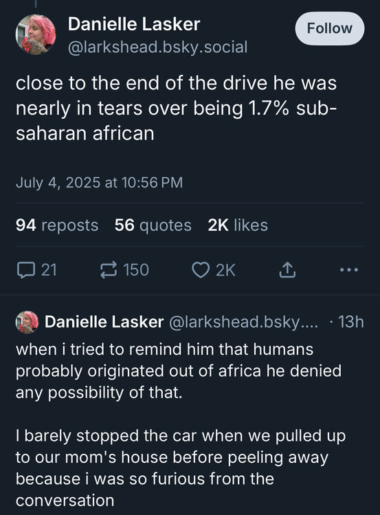 Now, depending on the information and the story, maybe the fact that the source is a nazi doesn't keep you from reporting it. But a real journalistic outfit would be pretty fucking careful. They'd want to make sure they weren't being used to advance the nazi's agenda and they would want to be honest with their audience about who their source was. Did the Times do any of that? No. They were happy to tell exactly the story the nazi wanted them to tell, they gave the nazi anonymity, and even described him as an "academic" so their audience would think the source was something other than a dipshit, gutter racist little nazi freak. And published this on the same day SCOTUS just gave the OK for Trump to illegally render people to third-world torture prisons and the GOP passed their bill destroying Medicaid and giving ICE a bigger budget than all but two militaries on the planet get.