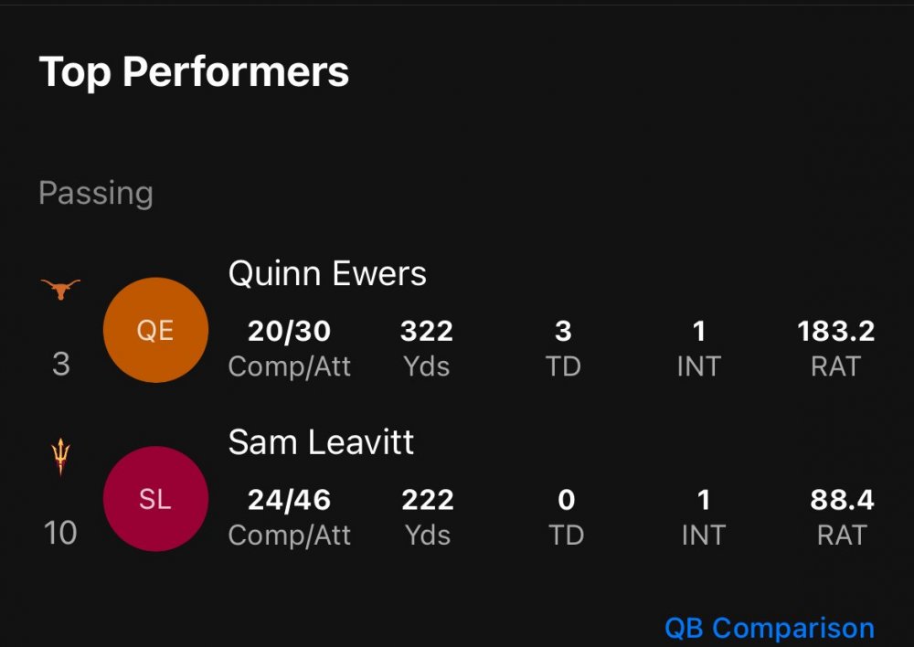 4. He probably won’t lead us to a National Championship trophy, but he played well in the 4th, aside from the floater pick. He absolutely bent ASU over in overtime, when it felt like we were cooked. Props for a great finish under immense pressure.