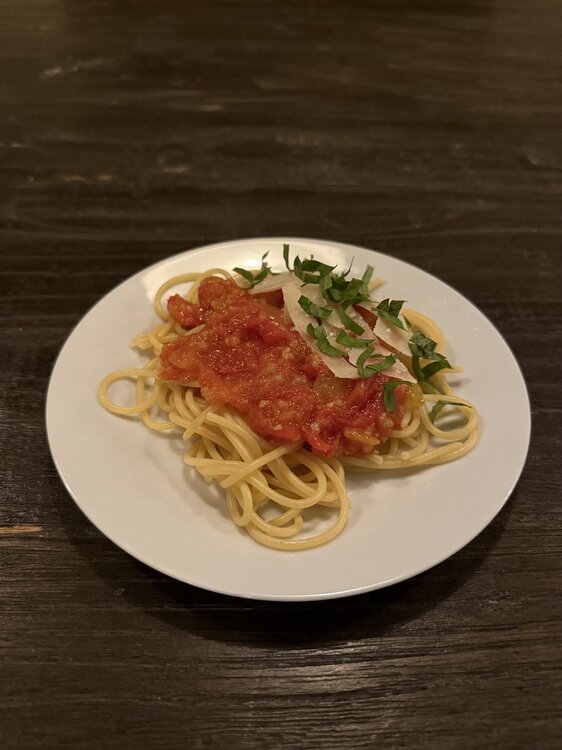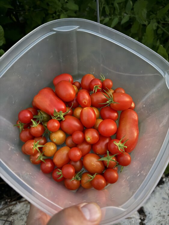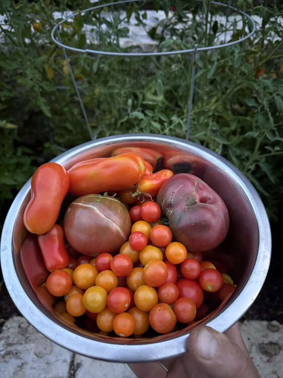 12. Etiuda peppers that wouldn’t turn orange, Juliet, San Marzano and cherry tomatoes, huckleberries, big ass blackberries, blackberry jelly and pasta pomodoro with fresh tomatoes and basil. I’m living off the fat of the land.