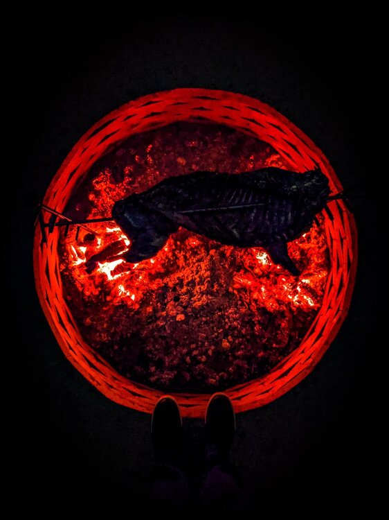 19. I did a half a goat over oak coals on a spit I made for my fire pit for about 30 people the NYE before Covid and it was pretty amazing. I think big cuts of meat take the cake here, but another option would be sous vide scallops. You can brown them in clarified butter in about 30 seconds so it’s fast to get them all plated. I’ve done that for maybe 6 people and you could probably stretch to 10 with two pans going without the first scallops getting cold before you sit down.