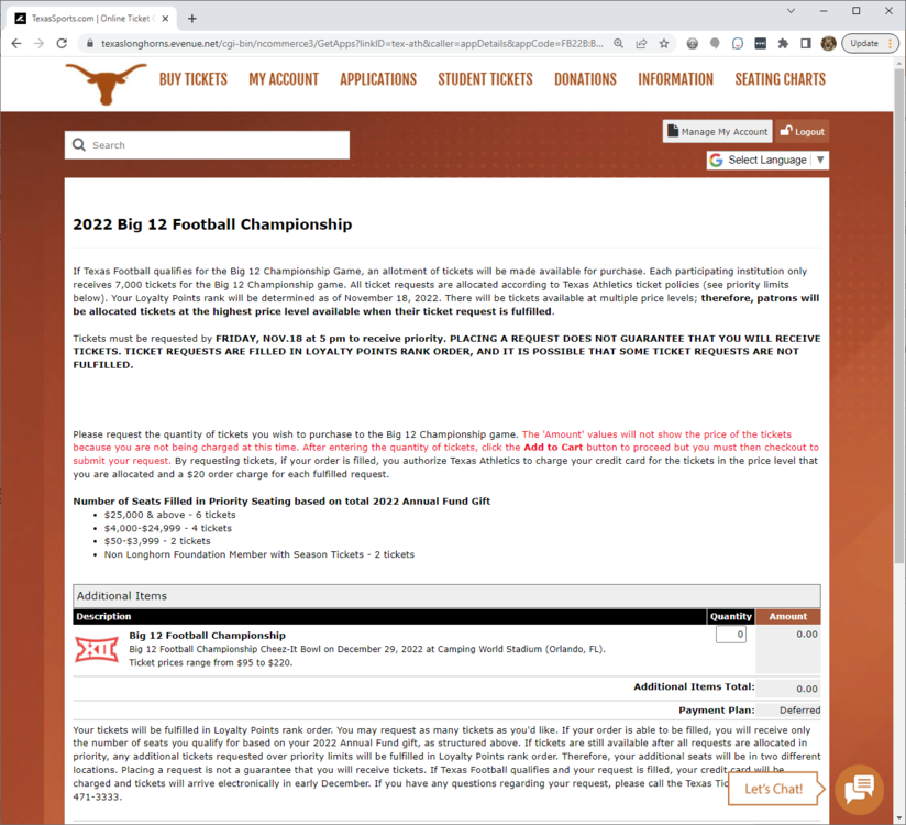 9. Got an email from UT to order big 12 championship tickets. Apparently it's in Orlando this year on Dec 29th.