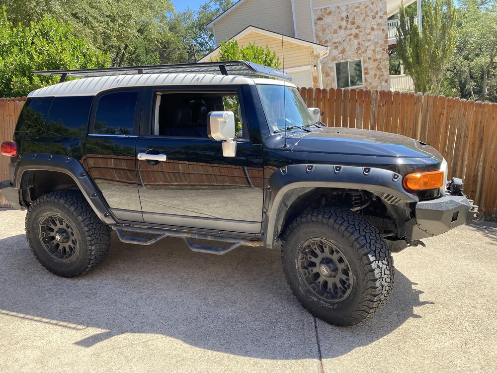 8. FJ 2 2012, 125k miles, wench, aftermarket bumpers, roof rack, subwoofer its lifted I think 6 inches, looks stupid with the current tires, need to lower or get bigger tires. hopefully this is the last truck I buy for a while. Going to get all the goodies I added out of old one and sell it. Daughter now wants the old one, don’t really want her driving the rust bucket.