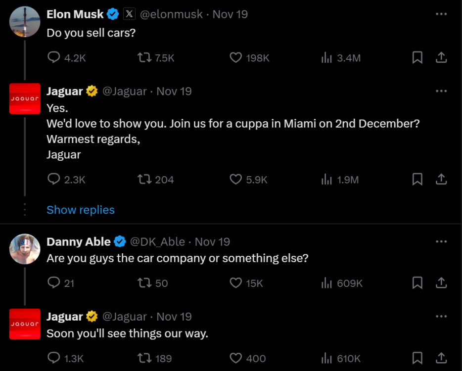 7. Anyone can make an ad that goes viral. A Chili's ad that just shows people licking dirt feet would go viral. "Success" is when the ad leads to product sales. No one is rushing out to Jag dealerships due to this ad.
