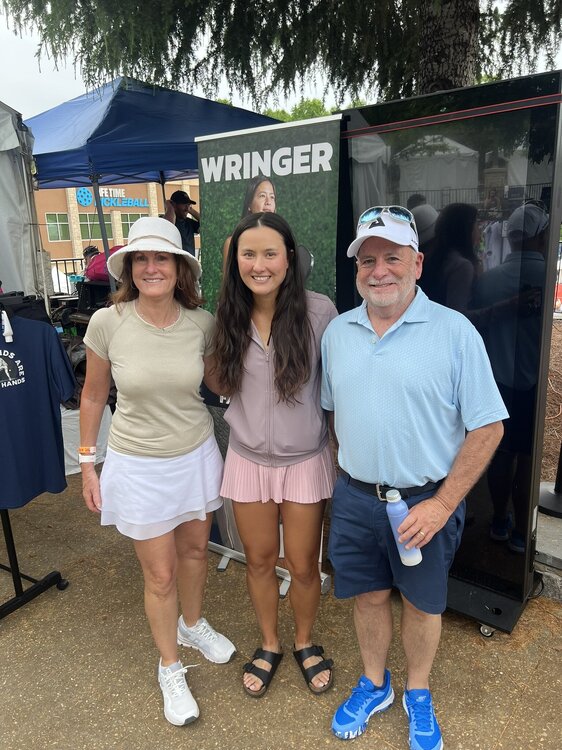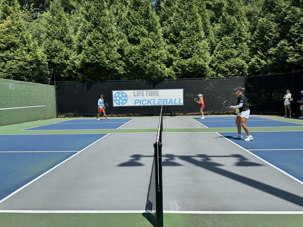 18. I went to the PPA in Atlanta last weekend. If you have the chance to go to a PPA, GO. I always thought I could win a point or two against the PPA players, NO FUCKING WAY. The event was well run and for the time being, the players are approachable and super friendly. There are no tunnels and no players only areas, they are there amongst you. I was looking for some friends who were playing in the non pro division and found a two courts way in the back. I looked in and the semifinalist were practicing. The Court was open and was able to sit in basically in what would be an umpire's chair in tennis which was maybe four feet from the net post and watch the warm ups. Ben and Anna Leigh were warming up with Dekle Barr and JW and Jorga Johnson were warming up with Andre the giant and Tina Pisnik. Here is that pic and other pics I took.
