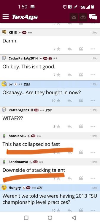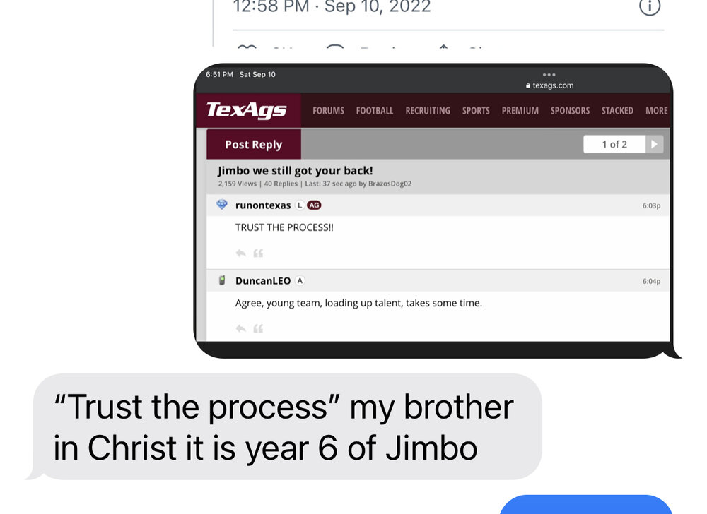 A few years ago when all of my sister's kids were attending A&M we decided to go watch a game with all of them. I had been to a couple of Kyle field games in the 90's including the 1993 game where Texas and a&m were both undefeated in conference play going in to the thanksgiving game (loud but not special) It was my wife's (no pics) first time to witness all this and she had kept hearing over and over from aggies she knew, customers etc how "epic" and "loud" it all was going to be and "OH! you have to watch the band at halftime! Don't go to the bathroom at halftime." We met some of her customers at their tailgate, they were all nice enough decent guys to host us. Listening to her recount her experience, she thought the "that's another fighting texas aggy first down!" after every first down was somehow more annoying than boomer sooner after every first down. "Sawing 'em off" 6 times a game (against New Mexico State) was gooberish but her biggest laugh is about the band and the cross t or whatever aggies call it (you know, the things that the computer program says is impossible to do or some such lore) She was thoroughly unimpressed and said she has been more entertained by high school marching bands in the past. But that is who they are. They are legends in their own mind and if the world could just experience it, they'd all awestruck by all the awesomeness that is aggieland.