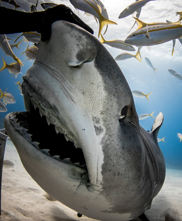 16. I’ve got 150 hours diving with tigers and bulls and to me the SPI video looks like a bull. In my experience bull sharks are fairly hard headed and can require a stronger shove to move them away. Tigers are easier to redirect but more curious. Here’s my shark selfie and another smiling tiger I took back in 2017