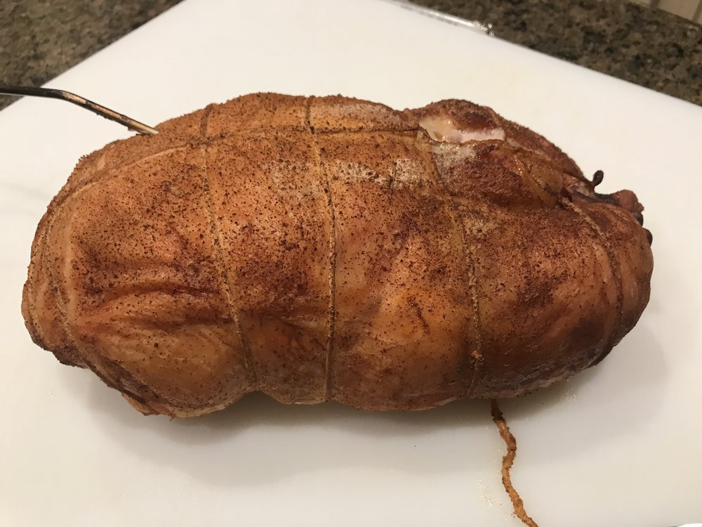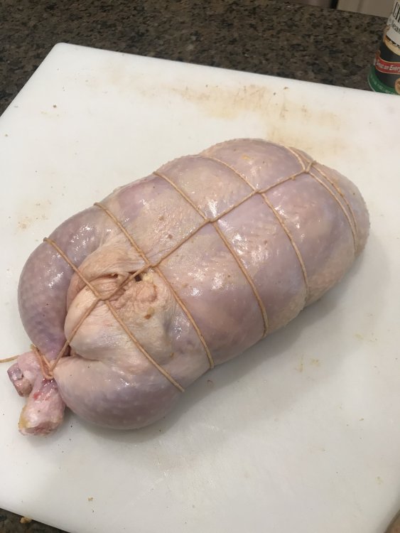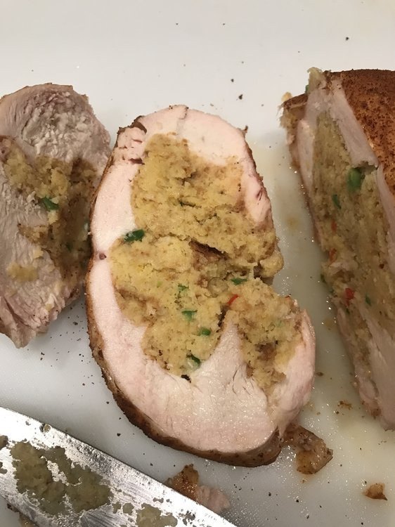 19. Deboned a 6 pound chicken, stuffed with jalapeño cornbread, trussed up, and smoked.