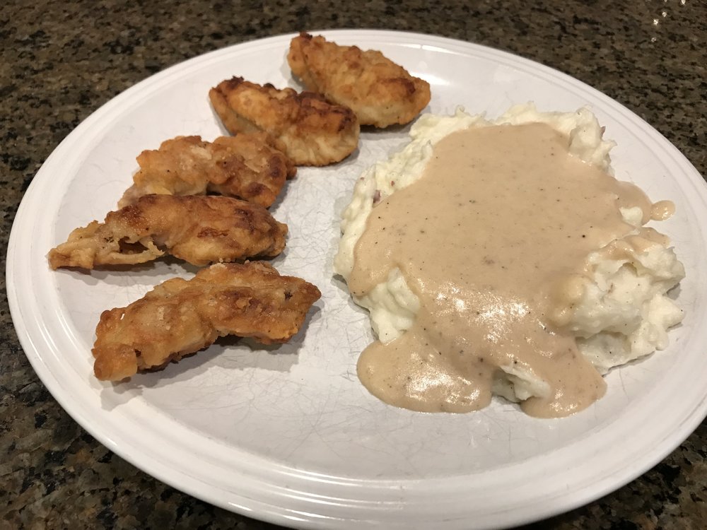 10. I had some quail legs and boneless breasts that needed to be cooked. Fried them up and paired them with mashed red potatoes and plenty of cream gravy.