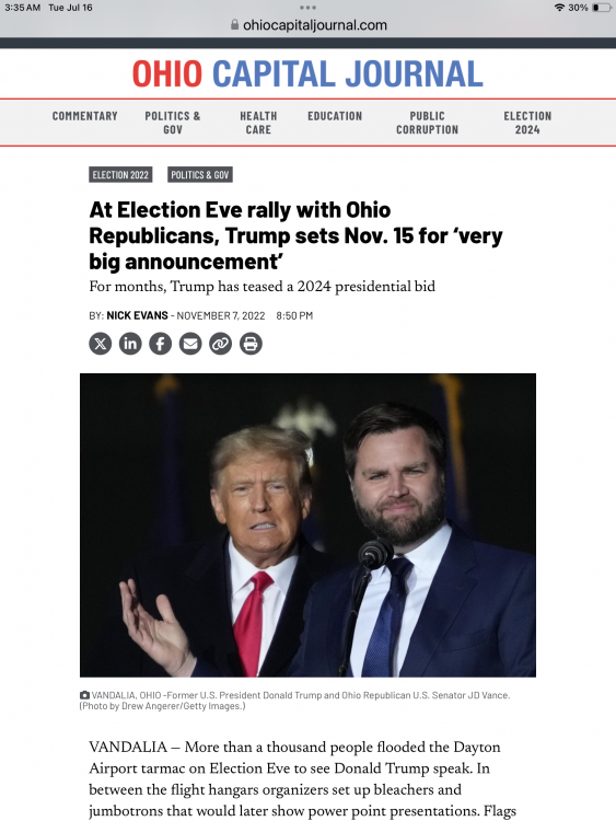 18. Don’t get trolled by trolls. That photo was from a campaign event in Dayton, Ohio, November 7, 2022. https://ohiocapitaljournal.com/2022/11/07/at-election-eve-rally-with-ohio-republicans-trump-sets-nov-15-for-very-big-announcement/