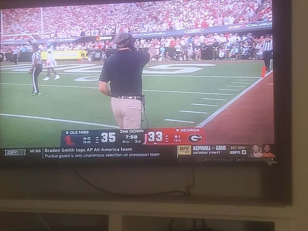 19. He did it all fucking night anyway, what's the fucking difference? As I look up at the Ole Miss- UGA replay , Kirby is casually strolling down to the 10 yard line. Nice work refs, fucking hell