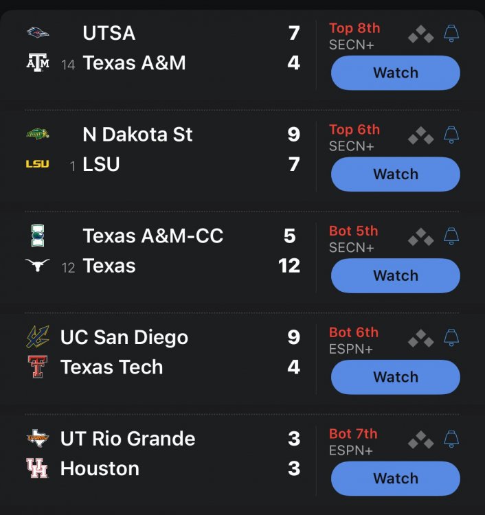 14. Updates (not making fun of - yet): Radford 9, #2 Tenn 11: b7 UCF 13, #7 UF 3: t9 #13 OU 0, #21 DBU 11: b6 UTSA 7, #14 aggy 2: t6 NDSU 7, #4 LSU 5: t4 UCSD 9, Tech 1: b4