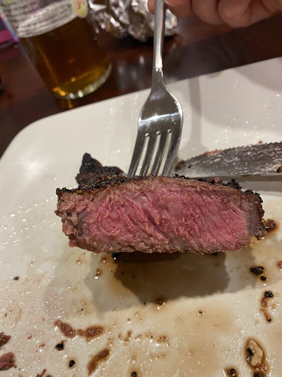 15. Always a tough act to follow. Found a couple nice looking strips I felt I had to buy. No ragrets. Salt pepper grapeseed oil. Grilled on Weber.
