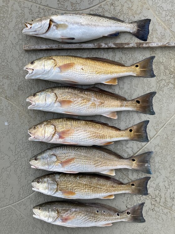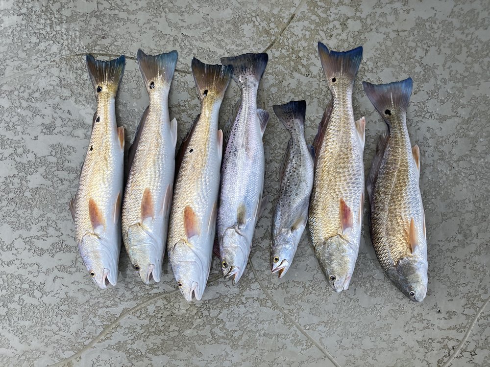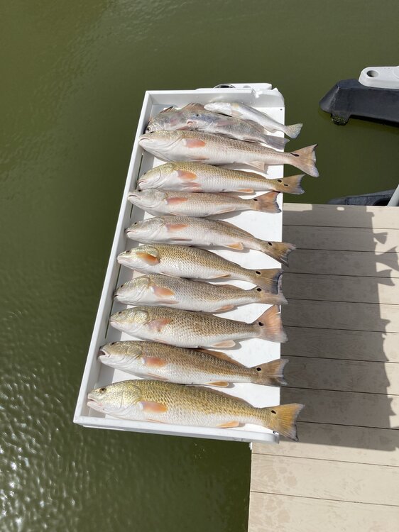 8. Saturday West Galveston Bay wading with live shrimp. Lots of dink trout but no big girls. Water was prolly a little too fresh with 5 consecutive days of rain. Biggest red went 27”. That was a fun one.
