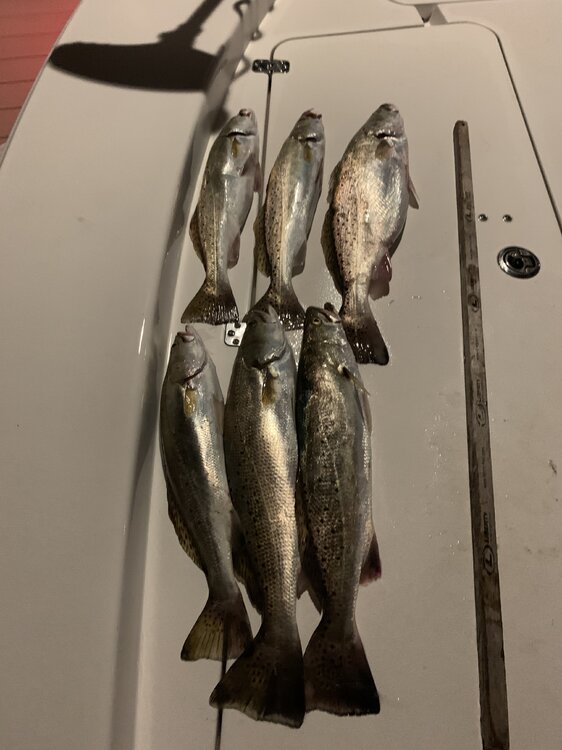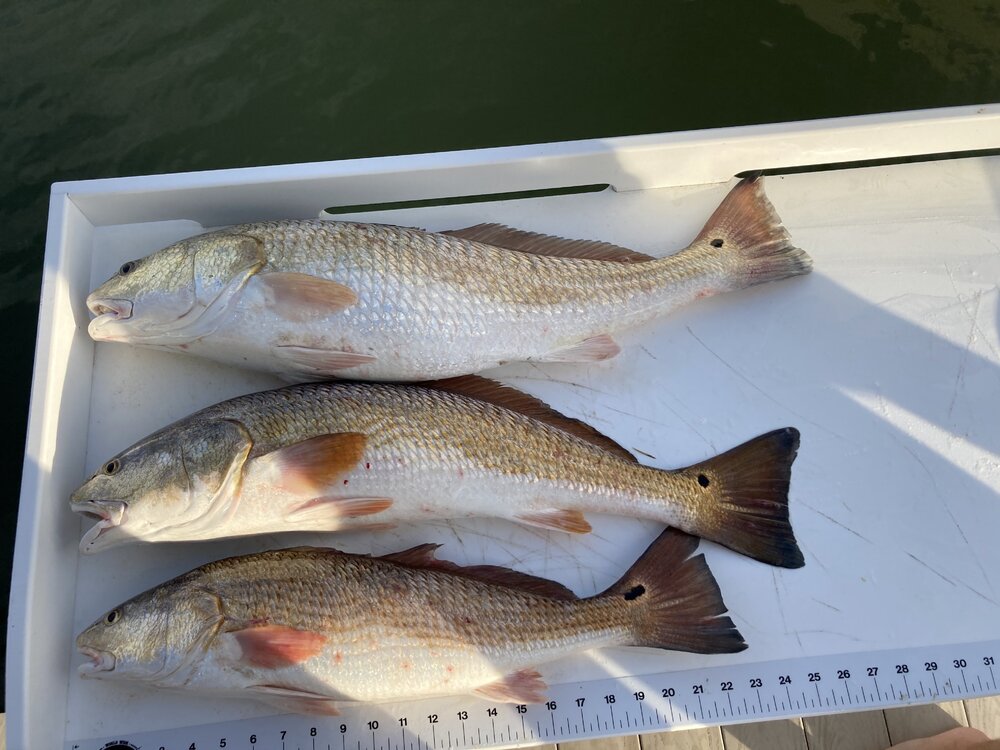 God I love mid seventies in December. I got a good buddy in town on a couple of big girls at the jetties on Friday. Then we waded West Bay yesterday midday for a couple hours and got these three for the grill. Its just as nice out today but too damn tired to go back out.
