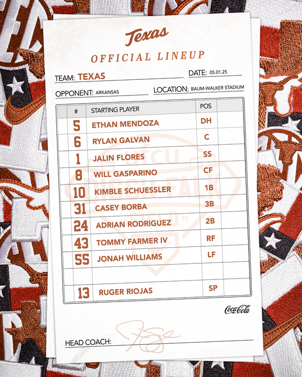 22. Tonight's Texas Lineup card: https://x.com/TexasBaseball/status/1918068586335134075