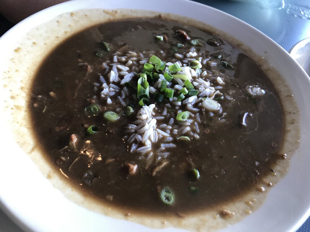 few more: parkway crispy duck leg khao soi at mopho salad and gulf fish at mamou naan with three sauces and raita and kerala seafood curry at saffron. everything here was amazing and this will be a new go-to every trip for us FC at hot stuffs - new home cookin' place by the turkey and the wolf folks - just opened up in May. mahoney's. my personal favorite po-boy spot in NO. duck and andouille gumbo and crab stuffed shrimp at jacque-imo's shrimp and fries at frankie & johnny's