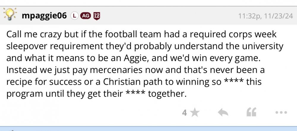 8. I wasn't watching and it was 21-0. Now I'm watching and aggy is about to score. time to leave again.