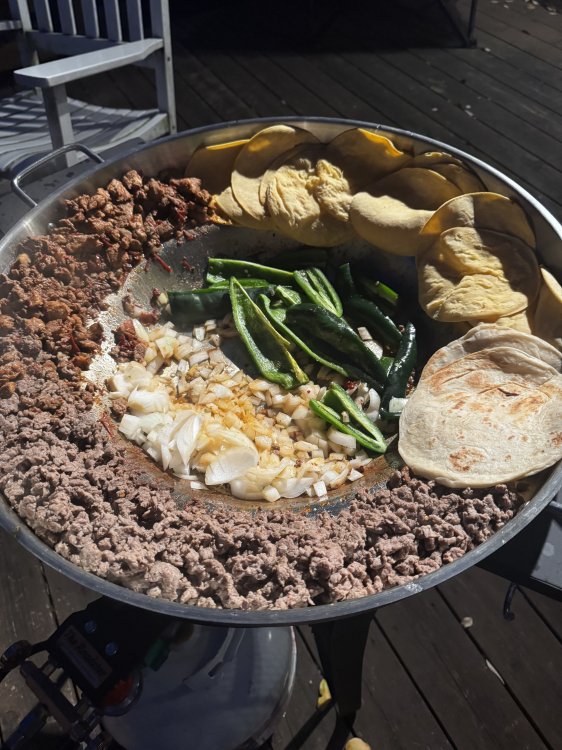 Great Christmas gift. Concord The Herdsman propane Comal. This is my second round of tacos. I also made some paella last weekend, but that will take some practice. I'm not good with rice. The family is loving these tacos. I marinaded my own the first time. Today was Mi Tienda Bistec Norteno( I think my own marinaded flank steak and pork was more flavorful). Grilled onions, poblano, and jalapeno. Cotija cheese, cilantro and radishes on the side.