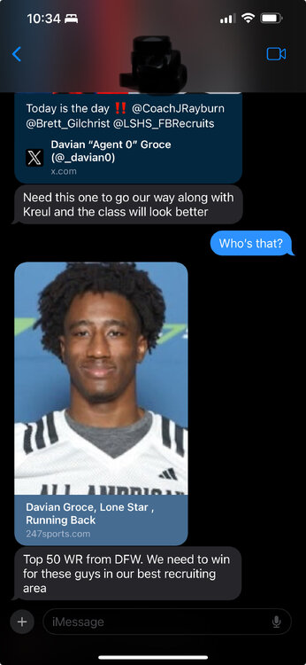17. Screen shot from OU buddy explaining how important Groce was to them. 🤣 I love that they declared him a top 50 WR while he’s deciding between OU, UF, Baylor and Houston. Hilarious.