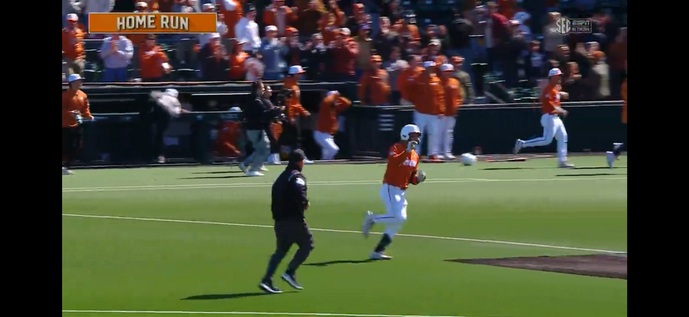 10. Galvan with the “bye bye” wave to the georgia 2nd baseman as he jogged by